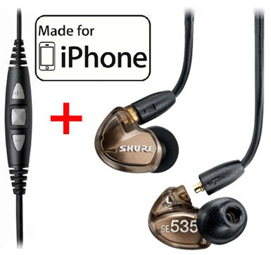 A bundle of 2 of items; Shure SE535 Sound Isolating Earphones - Bronze & Shure CBL-M+-K Music Phone Adapter Cable with Remote Plus MicSpacious Sound with Rich Bass, Sound Isolating DesignSpeaker Type: Triple High-Definition MicroDriversIncluded Premium Fit Kit 2-Year Limited WarrantyRemote and mic supported only by: iPod nano (4th and 5th generation), iPod classic (120GB, 160GB only), iPod touch (2nd and 3rd generation), iPhone 3GS, iPhone 4, and iPad. The remote is supported by iPod shuffle (3rd generation). Audio is supported by all iPod models. Requires latest iPod software.Similar shure-se535-v-earphones-and-cbl-m-k-music-phone-cable-with-remote-mic-for-iphone-ipod-and-ipad